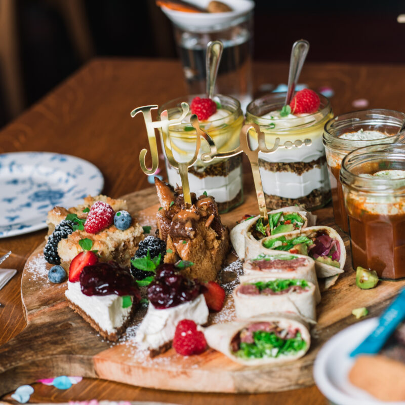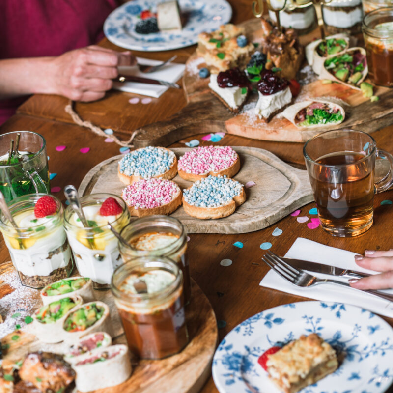 Onze Gezellige Middag is een eigentijdse twist op de klassieke High Tea, ideaal voor een speciale gelegenheid zoals een babyshower. De tafel wordt feestelijk gedekt met roze, blauwe of gemixte bordjes en uiteraard staat beschuit met muisjes klaar. Tijdens deze middag worden twee warme dranken naar keuze geserveerd, samen met een persoonlijke selectie uit huisgemaakte soepen en wraps. Daarnaast komt er een assortiment van onze gebakjes op tafel, aangevuld met een glaasje yoghurt met granola, vers fruit en een vleugje honing.