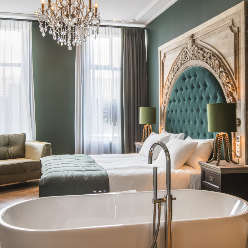 De classic suites behoren tot de ruimste kamers van ons boutiquehotel. Hier geniet je van net dat beetje extra luxe en comfort. Het unieke design van de kamers is eigentijds en rustgevend. Kom tot rust op onze hoge kwaliteit kingsize bedden. De ruime, dubbele inloop regendouche is van alle gemakken voorzien. In het midden van de kamer vind je als pronkstuk een vrijstaand ligbad. Er zijn grote en kleine zachte handdoeken en een assortiment van heerlijk geurende zeepproducten van Marie-Stella-Maris®. Op zoek naar de complete beleving die ons hotel te bieden heeft? Dan raden we deze kamer aan!
