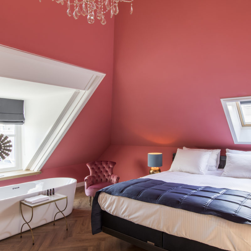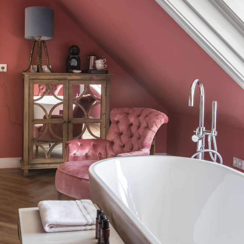 Je zult aangenaam verrast zijn over de luxe en unieke uitrusting van onze Junior Suites. Je kunt er heerlijk wegdromen in de uiterst comfortabele Kingsize bedden met koudschuimmatrassen. De ruime, dubbele inloop regendouche is van alle gemakken voorzien. In het midden van de kamer vind je als pronkstuk een vrijstaand ligbad. Er zijn grote en kleine zachte handdoeken en een assortiment van heerlijk geurende zeepproducten van Marie-Stella-Maris®. Van zakelijke gast tot grote levensgenieter: dit is de ideale uitvalsbasis!